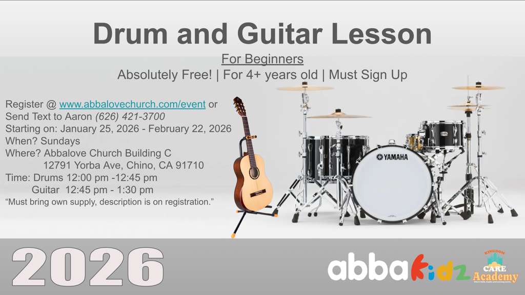 12PM-12:45PM (Drums) + 12:45PM-1:30PM (Guitar)
