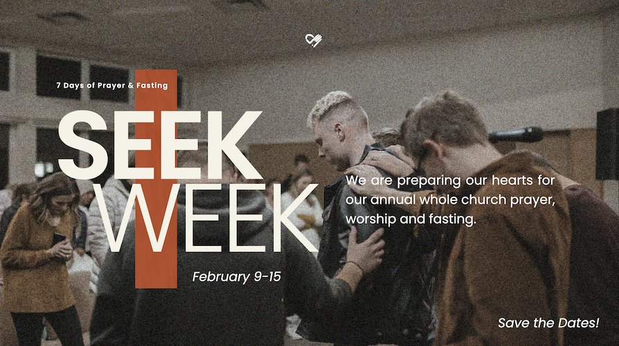 Seek Week is our annual church wide prayer, fasting and worship is coming up on Feb 9-15. We are preparing our hearts and making space in our actual lives for the presence of Jesus.